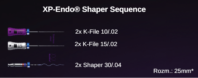 - uniwersalny instrument, który może być użyty jako kontynuacja każdego leczenia endodontycznego zakończonego na rozmiarze ISO 25 lub więcej